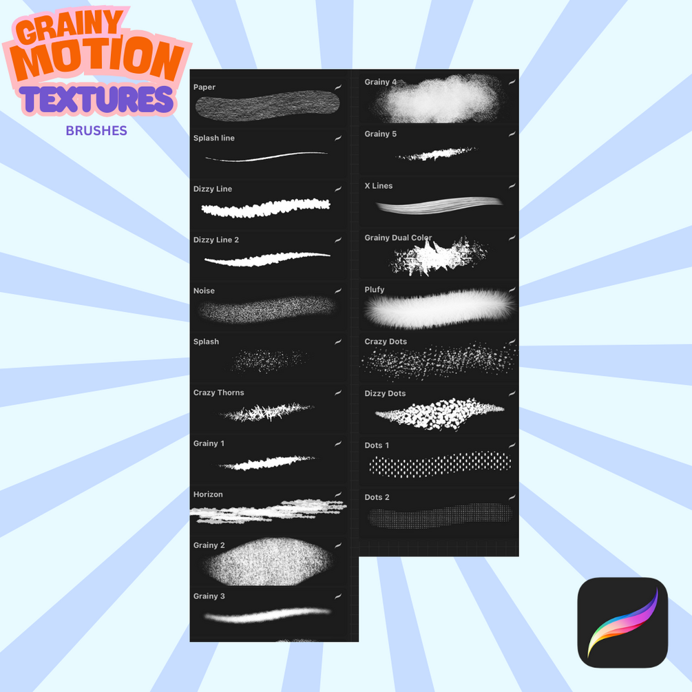 Grainy Motion Brushes Pack is a collection of 20 texture-rich brushes designed to bring dynamic, grainy textures to your digital artwork. Inspired by classic animation backgrounds, these brushes add depth, movement, and a vintage charm to your creations, perfect for achieving a hand-crafted, cinematic feel.